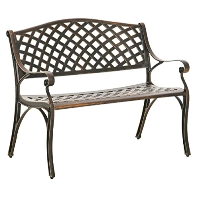 Sit, relax and rest outdoors in style with this 2 seater garden bench from Outsunny. Made from high quality and durable cast aluminium, the backrest has been crafted into a beautiful weave desig. Its aluminium construction also means this garden bench seat has been built to last, with two-process coating to protect the 2 seater benches from weather elements. Our garden loveseat is perfect for taking some time out, reading a book in the sun or simply socialising with friends. Specifications: ● Colour: Bronze ● Material: Cast Aluminium ● Overall Dimension: 103W x 62D x 83Hcm ● Seat Size: 98W x 42Dcm ● Seat to floor: 42.5cm ● Backrest Size: 37L x 98Wcm ● Weight Capacity: 240kg ● Item Label: 84B-744 Features: ● Two-seater outside bench, space to chill with a friend ● Ergonomically curved seat and armrests for added comfort ● Add rustic appeal and old fashioned charm to your backyard or garden ● Cast aluminium frame is tough and resistant to mild weathering. Wipes clean easily ● Suitable