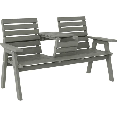 Soak up the sunshine with a friend with this unique and innovative garden bench from Outsunny. Using fir wood, ensuring strength and resilience outdoors, it is crafted into a three seater design, with the middle pulling up and transforming into a table-great for enjoying a coffee break out in the sun or with a friend. Slatted all over to prevent water building up and damaging the wood, it is finished with flat armrests on both ends and angled backs for comfort. A new approach to your outdoor relaxation. Specifications: ● Colour: Grey ● Material: Fir Wood ● Overall Dimension: 160W x 68D x 92H cm ● Seat Size: 56W x 45D cm (per seat) ● Seat to Floor Height: 43 cm ● Table Size: 42W x 49D cm ● Weight Capacity:250 kg ● Item Label: 84B-395V00GY Features: ● Innovative convertible design, transforms from a three-seater bench into a two-seater with a middle table effortlessly ● Made from fir wood for reliability and resilience for outdoor use. Will not decay or rot ● All-over slats, allows air