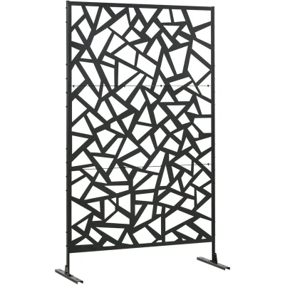 ManoManoGeneral description This stylish Outsunny Metal Garden Partition Screen transforms your outdoor space by swiftly dividing areas while serving as a charming trellis. Crafted from solid steel with protective paint, it ensures longevity and enhances your garden aesthetics. The screen is designed for decorative use and space separation, providing a see-through privacy solution. Technical specifications Pattern: Irregular Figure Colour: Black Material: Steel Overall Dimensions: 122W x 45D x 198H cm Each Panel Dimensions: 120W x 60H cm Panel Bottom Height: 18 cm Item Label: 844-629V00BK Installation Fix it firmly with the included expansion screws. Assembly required. Wide feet and four expansion screws help mount it to the ground. We recommend adding weights to keep it secure. Usage Standing screen swiftly divides space for immediate privacy. Doubles as a trellis, supporting climbing plants beautifully.