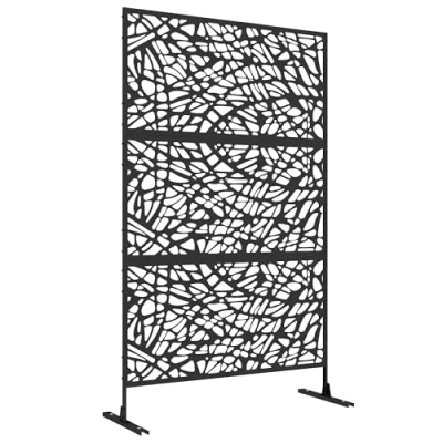 Quick space divider: Whether you're looking to divide a large garden or create a more intimate, private retreat, our decorative garden screen lets you effortlessly segment your outdoor space. An instant landscaping accent! Excellent as a trellis: Our hollow metal garden screen offers lots of gaps that can be used to help climbing plants like ivy or vines, cultivating lush greenery while enhancing the aesthetic appeal of your outdoor space Solid structure: Our decorative outdoor privacy screen is constructed of solid steel with protective paint. It will remain strong and stylish, protecting against rust and water damage, ensuring years of reliable use Easy installation: Comes with expansion screws to securely fix the feet, making this privacy garden divider stable even in wind. Providing lasting privacy and peace of mind Overall dimensions: 122W x 45D x 198H cm. Composed of three vertical segments, each segment is 120 x 60 cm. For decorative use/space separation only, this patio privacy screen is see-through