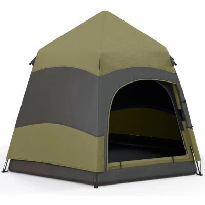 Outsunny Double Layer Instant Pop Up Tent with Rainfly, Hexagon 4 Man Dome Tent, Portable Camping Shelter Sewn in Groundsheet and Carry Bag, for Festival Backpacking Road Trips, Dark Green