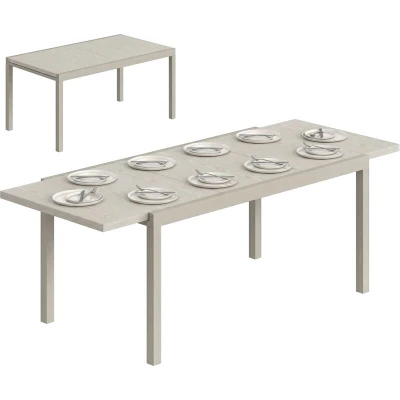 Does hosting outdoor gatherings feel like a juggling act between guest lists and available space? Your garden dining table is either too small for parties or too large for family dinners. The Outsunny outdoor dining table effortlessly adapts, extending from 154 to 214 cm. Its chic faux-wood top and robust aluminium frame provide both style and reliable stability, making every occasion, big or small, a memorable experience with this metal patio table. Specifications: ● Colour: Light Grey Wood Effect ● Materials: Aluminium, Steel ● Extended Dimensions: 214L x 85W x 75H cm ● Closed Dimensions: 154L x 85W x 75H cm ● Weight Capacity: 70 kg (middle area), 25 kg (side area) ● Item Label: 84K-095V00GY Features: ● This outdoor patio table easily expands from 154 to 214 cm ● Aluminium tabletop features a chic faux wood-grain finish for enhanced style ● Powder-coated steel legs hold up to 70 kg ● Adjustable foot pads ensure stability on uneven patio or garden ground ● Versatile design is