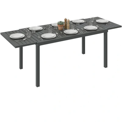 Outsunny Extending Garden Table for 6 8, Outdoor Dining Table, Dark Grey