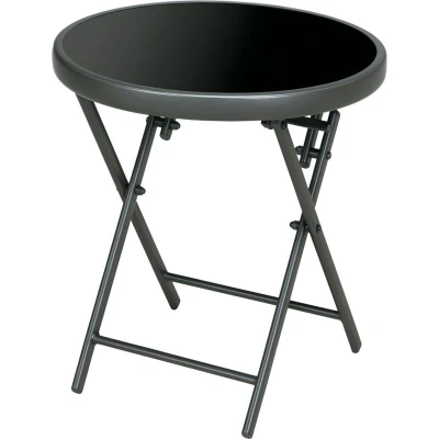 General description An essential for outdoor spaces, the Outsunny Round Folding Side Table with Imitation Marble Glass Top is perfect for pairing with your chair, creating a cozy spot to sit, drink, and enjoy the fresh air. Its foldable design allows for easy transport and storage, making it a must-have for this season and beyond. Technical specifications Colour: Dark Grey, Black Material: Steel, Tempered Glass Table Dimension: Φ45 x 50H cm Foldable Size: 68L x 45W x 7.5H cm Weight Capacity: 25kg Other information Safe tempered glass tabletop Powder coated metal frame for strong structure Anti-slip plastic feet to protect floors No assembly required