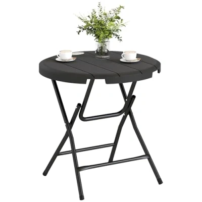 Outsunny Foldable Garden Dining Table, Round Outdoor Table with HDPE Tabletop and Steel Frame for Patio Garden, Dark Grey