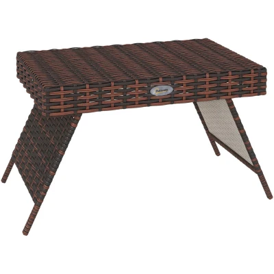 Outsunny Foldable Outdoor Coffee Table, Steel Frame Rattan Side Table for Garden, Brown
