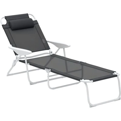 Outsunny Foldable Sun Lounger, Outdoor 4 Level Adjustable Backrest Reclining Lounge Chair with Headrest & Armrests for Patio, Garden, Charcoal Grey