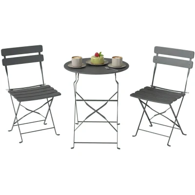 Envision your excellent outdoor nook but dread the thought of tedious assembly and weather damage. Balcony furniture set arrives fully assembled instantly creating your retreat. Outsunny metal bistro set for 2 for garden features a dual rust-resistant coating, ensuring patio table and chairs endures through seasons of morning coffees and evening chats. When you need the space back, this balcony table and chairs folds away effortlessly for both a beautiful escape and maximum convenience. Specifications: ● Colour: Grey ● Material: Metal ● Chair Dimension: 42W x 48D x 80H cm ● Table Dimension: Φ58 x 70H cm ● Folding Dimension: 94.5L x 42W x 8.5H cm (chair) 93L x 58W x 5.5H cm (table) ● Seat Dimension: 42W x 37D cm ● Seat Height: 46 cm ● Backrest Dimension: 42W x 40H cm ● Weight Capacity: 120 kg (chair) 50 kg (table) ● Item Label: 84K-146V00GY Features: ● Three-piece small garden table and chairs set, use outdoors where you want ● Electrophoresis and powder coated metal frame, 200% more