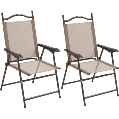 General description A comfortable seat for outside anywhere, the Outsunny Folding Chairs Set features a portable design, allowing you to take them to various locations. The set includes two chairs, each designed with a tall back and armrests for optimal support, while the breathable mesh fabric seats ensure comfort during use. Technical specifications Colour: Mixed Brown Material: Steel, Mesh Fabric Overall Dimensions: 56W x 62D x 97H cm Folded Dimensions: 92L x 56W x 8H cm Seat Size: 43.5W x 43D cm Seat Height: 42.5 cm Weight Capacity: 120 kg Item Label: 84G-298V00BN Usage Ideal for outdoor settings such as patios, gardens, or camping trips. Easy to carry and store due to the foldable design. No assembly required, making them ready to use right out of the box.
