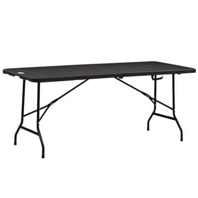 Pick a stylish addition for dining, afternoon tea and party on patios, decks with this folding garden table from Outsunny! The combination of steel frame and HDPE tabletop ensure reliable daily use. The table is a foldable structure, easy to carry anywhere you want and store in a corner when not in use for saving space. Add enduring beauty, style and grace to your garden with this essential part of any outdoor living space. Specifications: ● Colour: Charcoal Grey, Black ● Material: Steel, HDPE ● Overall Dimension: 180L x 75.5W x 73H cm ● Folded Dimension: 92L x 75.5W x 8H cm ● Top Thickness: 4 cm ● Weight Capacity: 100 kg ● Item Label: 84G-004V00CG Features: ● Large dining table for 6 people ● Quick to fold to compact size for easy storage ● Wood-like HDPE tabletop for a natural feeling and resistant to weather ● Powder-coated steel frame is robust and reliable for outdoor use ● A handle on the side for convenient transport ● Easy to clean with a damp cloth ● No assembly required