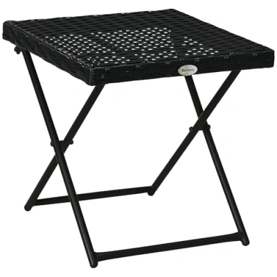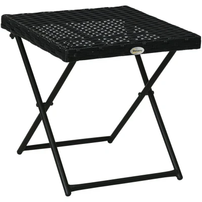 Outsunny Folding Rattan Garden Coffee Table, Small Square Outdoor Bistro Side Table with Top for Patio, Balcony, Porch, 40 x cmBlack