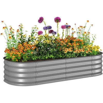 Outsunny Galvanised Raised Garden Bed Planter Box with Safety Edging Silver