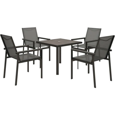 Outsunny Garden Dining Set, Outdoor Table and Chairs, Grey 5 PCs Set