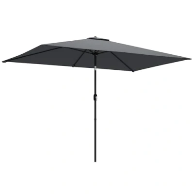 ManoManoStay cool and comfy with the Outsunny garden umbrella! Featuring an adjustable tilt, effortlessly track the sun and enjoy shade all day long. Crafted with fade-resistant 180g polyester fabric, this outdoor umbrella blocks harsh sunlight while keeping you refreshed outdoors. The robust metal frame ensures stability and the easy-crank handle allows you to set up in seconds. Great for relaxing, dining, or entertaining in style – sunshine just got better! Specifications: ● Colour: Dark Grey, Black ● Material: Polyester, Metal, Plastic ● Umbrella Size: 300W x 200D x 235H cm ● Canopy Size: 200L x 292W cm ● Canopy Bottom Height: 195 cm ● Pole Diameter: 38 mm ● Closed Size: Φ16 x 246H cm ● Item Label: 84D-501V00CG ● NOTE 1: Required 30 kg weight not included. ● NOTE 2: Do not use umbrella during extreme weather (strong wind, heavy rain, snow). Features: ● Adjustable tilt feature ensures optimal shade throughout the day ● 180g polyester fabric provides lasting durability, reliable sun and heat