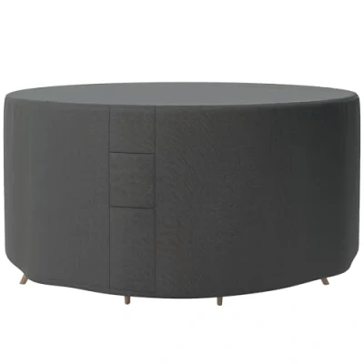 ManoManoGeneral description Keep your outdoor furniture clean and pristine all year round with the Outsunny Large Outdoor Set Round Cover. This cover is designed to protect your rattan corner sofa and other garden furniture from rain, snow, dirt, and other elements that could cause damage. Technical specifications Colour: Black Material: Oxford cloth with PVC coating Overall Dimension: Ф193 x 81H cm Heavy-duty construction with interlocking seams for durability Compatibility and accessories Suitable for square, rectangular, and oval-shaped furniture sets Installation Slips on and off quickly and easily Finished with a toggle and drawstring fastening to fit securely Tie and buckle fastenings to attach and secure tightly Usage Protects garden tables, chairs, and other furniture against weather damage, including rain, sunlight, and dirt Easy to clean due to the PVC coating