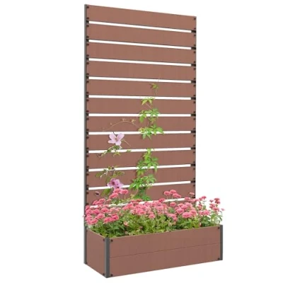 This versatile piece features a raised planter box, perfect for growing a variety of plants, flowers, vegetables, and even herbs. The slatted trellis at the back provides an ideal support structure for climbing plants and vines, allowing your garden to thrive vertically while adding an attractive visual element to your patio, balcony, or backyard.