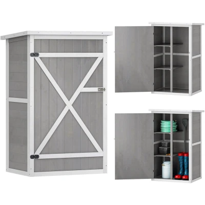 Outsunny Garden Shed Wooden Storage Fir Wood Tool Cabinet Organiser with Shelves 75L x 56W x115Hcm Grey