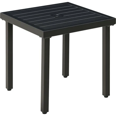 ManoManoGeneral description Keeping what you need, near outdoors. Look to this Outsunny square table, designed for outdoor use with a strong powder-coated steel frame and a compact square size. Technical specifications Colour: Black Material: Steel Overall Dimensions: 51L x 51W x 51H cm Tabletop Dimensions: 51L x 51W cm Umbrella Hole Diameter: Φ45mm Weight Capacity: 30kg Item Label: 84G-034V00BK Other information Features adjustable footpads for stability Assembly required