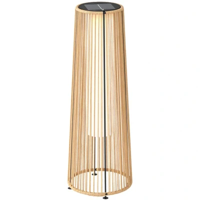 This solar powered lamp from Outsunny is a sophisticated touch for your outdoors this season. The structure made from steel, it's crafted into a graduating cylinder shade for a cool look which holds its balance. The stringed design is wrapped in PE wicker for a garden-appropriate look, which also protects the structure. Inside there are lights to illuminate your space at night. It automatically turns on and off and charges in the daylight, meaning no electricity connection is required Specifications: ● Colour: Beige ● Material: PE, Steel, PP ● Overall Dimension: Ф21.5 x 61H cm ● Top Size: Ф15 cm ● Solar Panel: 8.5L x 8.5W cm ● LED Light Power: 0.8W ● Charging Time: 6 hours in sufficient sunlight ● Illuminate Time: 8 hours ● Light: Warm light (yellow) ● Certification: CE-EMC, RoHS, MSDS ● Item Label: 866-066V00BG Features: ● Suitable for driveways, gardens, balconies, porches and other outdoor spaces ● Solar charging panel on top to charge under the sunlight ● Turns on and off