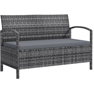 Outsunny Garden Storage Bench with 125L Capacity, 2 Seater PE Rattan Storage, Cushion, Wicker Outdoor Loveseat Steel Frame for Patio, Grey