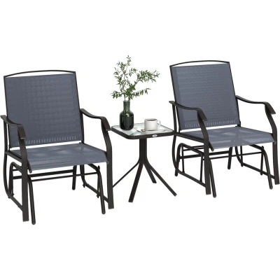 Outsunny Glider Rocking Chair & Table Set 2 Single Seaters Rocker Garden Swing Patio Furniture Bistro Grey