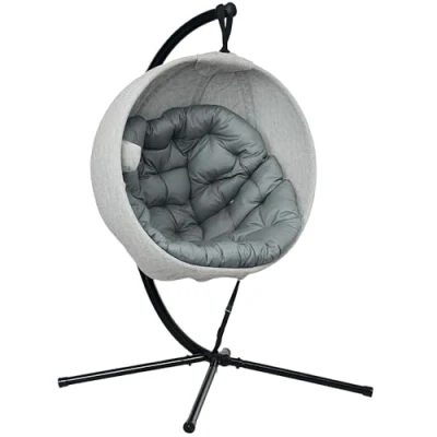 ManoManoGeneral description Unwind in stylish comfort with the Outsunny outdoor egg chair! With a wide seat covered in leaves-pattern texteline fabric, this egg garden chair offers a cozy, bird-nest-like retreat. Enjoy cloud-like relaxation with a thick 13cm cushion and a bottom cushion. The foldable basket makes storage effortless, and a built-in cup holder keeps your drink within easy reach. With a powder-coated steel frame and four-leg base, this swinging egg chair provides stable, lasting support for your outdoor leisure. Technical specifications Colour: Grey, Black Material: Steel, Texteline, Polyester, PP Cotton Overall Dimension: 116W x 125D x 172H cm Basket Dimension: 116W x 63D x 103H cm Basket Folding Size: 103L x 63W x 20H cm Base to Floor Height: 50 cm Seat Size: 74W x 56D cm Back Size: 74W x 95H cm Cushion Size: (large) 116L x 116W x 13D cm, (bottom) 74L x 56W x 4D cm Weight Capacity: 120 kg Item Label: 84A-356V70GY Other information Please use a protective cover when not in use