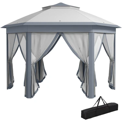 Outsunny Hexagon Patio Gazebo Garden Shelter Heavy Duty Double Roof w/Mesh, 4 X 4m84C 120GY