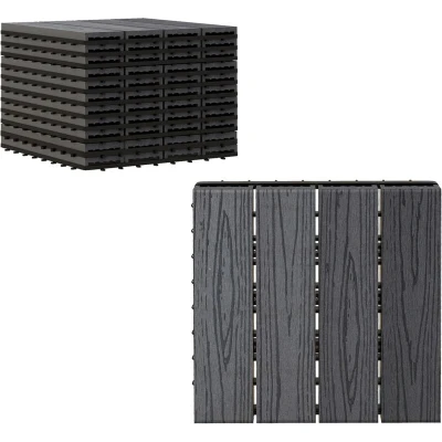 Composite outdoor interlocking deck tiles are an easy custom flooring enhancement for the patio, shower room, walkway, or even a greenhouse or urban garden. The patio tiles are composite material with a look and feel of real solid wood all without the hassle of splinters and maintenance. The slightly elevated wood floor tiles do not hold moisture and they allow water to evaporate more quickly, providing a step by the pool or shower. Check out this patio flooring and get your deck a new look. Specifications: - Colour: Grey - Material: WPC - Net Weight: 9.5 kg - Per Tile Dimensions: 30L x 30W x 2.2H cm - Covering Area: 10 sq. ft. Features: - Made of highly tough WPC material made to withstand repeated use over long periods - Anti-slip properties even in wet conditions - Ability to withstand wind, rain, sun and other weather elements - Multifunctional, great for the garden, balcony, pool, bathroom and more - DIY design, it can be cut into smaller pieces to fit your individual needs
