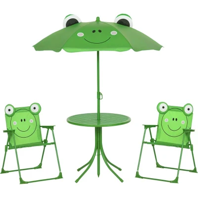 Outsunny Kids Outdoor Table and Chairs Garden Furniture Frog Pattern with Removable & Height Adjustable Sun Umbrella, Green