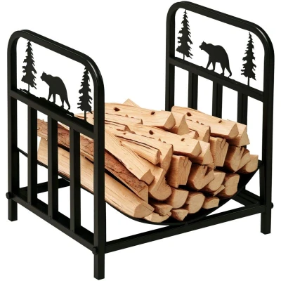 Outsunny Metal Firewood Log Holder Indoor Outdoor Rack Inner Arced Fireplace Wood Storage Shelf w/Bear Shape Design, Rust Resistant, Black, 42W x 33.5D 43H cm