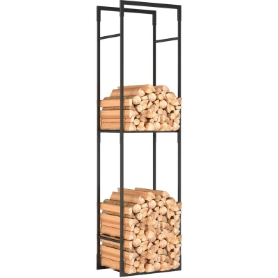 ManoManoGeneral description Designed to prevent damp wood and debris, the Outsunny Log Storage Rack provides a stable, space-saving solution for neatly stacking your firewood. Its tall, slim design fits easily on patios, in gardens, or beside indoor fireplaces without taking up much floor space. The adjustable shelf lets you organize logs, tools, or seasonal items just the way you need for a cleaner and more organized fireside area. Technical specifications Colour: Black Material: Metal Overall Dimension: 45L x 31W x 170H cm Shelf Dimension: 43.5L x 27.5W cm Maximum Load: 100 kg Item Label: 842-416V00BK Installation Comes with all tools and hardware for quick, hassle-free setup