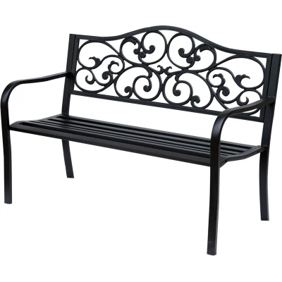 Outsunny Metal Garden Bench, Outdoor Bench with Floral Back, Black