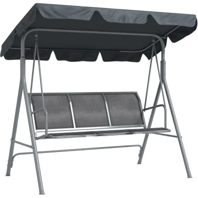 Outsunny Metal Swing Chair Garden Hammock 3 Seater Patio Bench w/ Canopy Dark Grey