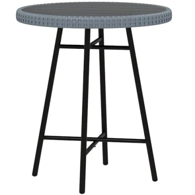 Outsunny Outdoor Coffee Table, Garden PE Rattan Side Table with Plastic Wood Top, X Shape Support for Indoor, Outdoor, Balcony, Patio, Grey