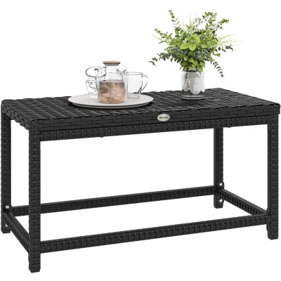 Outsunny Outdoor Coffee Table, PE Rattan Side Table w/ Plastic Board, Black