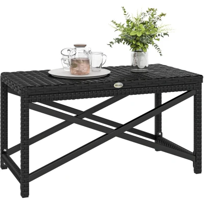 Outsunny Outdoor Coffee Table, PE Rattan Side Table w/ Plastic Board, Black