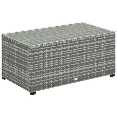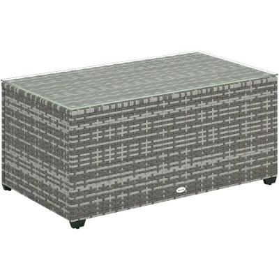 Forever style for your garden with this Outsunny rattan garden table. A galvanised steel frame with powder coating for a strong core structure wrapped in tough plastic rattan, the garden side table effortlessly matches your current rattan garden furniture. It's fitted with a 5mm thick tempered top for a sleek touch and a safe holding place. Complete with adjustable feet for stability. Specifications: ● Colour: Light Grey ● Material: Galvanised steel, PE rattan, Tempered glass ● Overall Dimension: 90L x 50W x 38Hcm ● Glass Thickness: 5mm ● Weight Capacity: 50kg ● Item Label: 867-229V00LG Features: ● Rattan design of side table effortlessly pairs with current garden furniture ● Galvanised steel frame with powder coating for a strong core ● 5mm glass top: a sleek and easy-to-clean surface ● Adjustable feet to stand stable ● Maximum load 50kg, assembly required