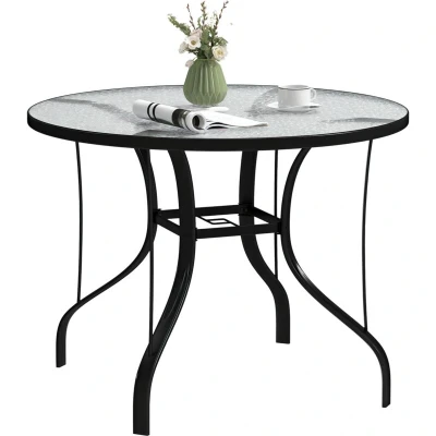 Outsunny Outdoor Dining Table with Parasol Hole, Tempered Glass Top Metal Frame Coffee Table, Round, 96.5 x 71 cm