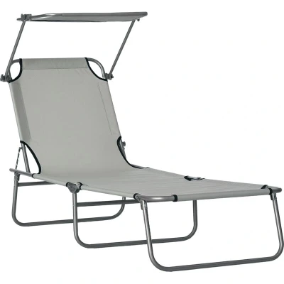 Outsunny Outdoor Foldable Sun Lounger, 4 Level Adjustable Backrest Reclining Lounger Chair with Angle Adjust Shade Awning for Beach, Garden, Patio, Light Grey