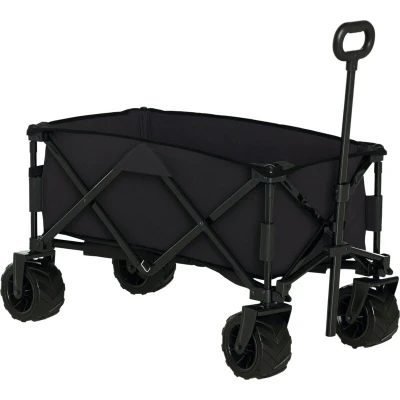 Outsunny Outdoor Folding Garden Trolley on Wheels, Pull Along Camping Cart, Cargo Wagon Trailer with Telescopic Handle, Big Wheels for Beach Garden, Black
