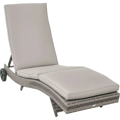 Outsunny Outdoor Rattan Sun Lounger with Reclining Back, Wheels, Grey