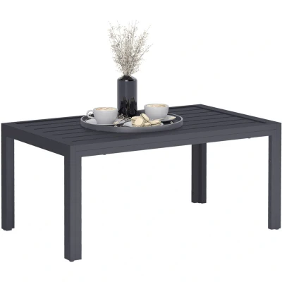 Enhance your outdoor home decor with the charming balcony table from Outsunny. The slatted tabletop combines aesthetic and practical, preventing water building up and quick drying for a comfortable using experience. The galvanised steel frame with a powder-coated finish ensures durability and can withstand various weather conditions. Let this rectangle garden table accompany you for enjoyable leisure time. Specifications: ● Colour: Grey ● Material: Galvanised Steel ● Overall Dimension: 101.5L x 61W x 46Hcm ● Weight Capacity: 30kg ● Item Label: 84G-291V00GY Features: ● Large tabletop provides place for drinks and snacks ● Slatted tabletop prevents water buildup ● Powder coated galvanised steel frame ensures strong foundation ● Adjustable pads on the bottom feet to keep it stable ● Suitable for patio, balcony, terrace, garden and so on ● Easy assembly required