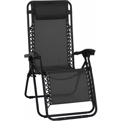 Outsunny Outdoor Zero Gravity Chair w/Head Pillow for Patio Decking Gardens Camping84B 227BK