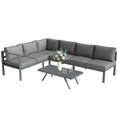 ManoManoDoes your outdoor space feel limiting, forcing you to choose between entertaining friends and relaxing alone? This constant compromise and worry over weather damage can spoil your garden retreat. The Outsunny garden corner sofa set effortlessly adapts, converting from a sofa to a sunlounger. Built with a rustproof metal frame and 10 cm thick seat cushions, this outdoor furniture set offers a comfortable escape, letting you embrace every sunny moment without a second thought Specifications: ● Colour: Dark Grey ● Material: Aluminium, Polyester, Sponge, PP Cotton ● Overall Dimensions (L-Shaped): 246L x 170W x 66H cm● Sofa Dimension: 174L x 67W x 66H cm ● Chaise Lounge Dimension: 179L x 67W x 66H cm ● Table Dimension: 100L x 50W x 30H cm ● Seat Dimension: 174W x 65D cm ● Seat Height: 31 cm ● Back Dimension: 174W x 35H cm ● Seat Cuhsion: 58W x 65D x 10T cm ● Back Cuhsion: 60W x 35D x 15T cm (Large), 45W x 35D x 15T cm(Small) ● Weight Capacity: 360 kg (Sofa), 50 kg (Table) ● Item Label: