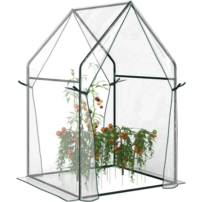Outsunny Portable Mini Greenhouse with 2 Zipped Doors Tomato Growhouse 90 x 145cm