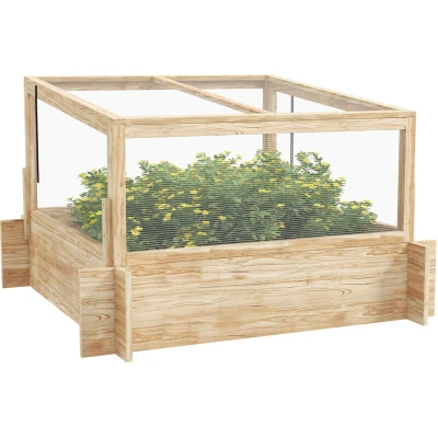 Outsunny Raised Garden Bed with Greenhouse Openable Top Wood Elevated Planter Box