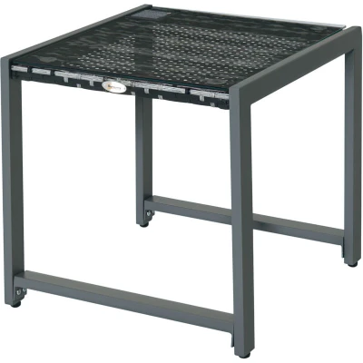 General description This patio table from Outsunny is perfect for dining and relaxing outdoors. Made from PE wicker in a soft grey tone, it is weather resistant and low maintenance, with an aluminium frame underneath for extra strength and stability. The large and sleek tempered glass panel on top provides ample space for drinks, food, and more. It features adjustable pads on the feet to ensure stability at all times and pairs well with matching chairs (codes 860-044 and 860-045). Technical specifications Item Name: Patio Table Brand Name: Outsunny Colour: Grey Material: Aluminum, PE Rattan Table Size: 50L x 49.5W x 50H cm Table Weight Capacity: 30 kg Net Weight: 5.5 kg Flat Pack: YES Custom Label: 867-033 Other information Weather and UV resistant Easy to clean and maintain Assembly required