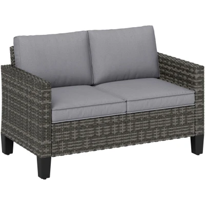 Outsunny Rattan Sofa with Cushions, 2 Seater Garden Furniture, Dark Grey