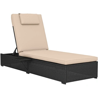 Relax in your garden with this Outsunny rattan lounger, Enjoy customisable comfort with the five-position back. The soft padded cushion keeps you comfortable. The side table offers a handy holding spot, so you don't have to move once seated and comfortable. Sun lounger has galvanised steel frame with powder coating means a strong core, wrapped in stylish and protective plastic wicker. Specifications: ● Colour: Black, Beige ● Material: Galvanised Steel, PE Rattan, Polyester ● Overall Dimension: 196L x 62W x 35H cm ● Seat Size: 62W x 118D cm ● Back Size: 58W x 76D cm ● Seat to Floor Height: 35 cm ● Weight Capacity: 120 kg ● Item Label: 862-073V70BG Features: ● Anti-rust metal frame for a strong core, wrapped in weather-resistant rattan ● Soft padded cushion for comfort ● Five-position adjustable back ● Adjustable feet pads for balance ● Assembly required
