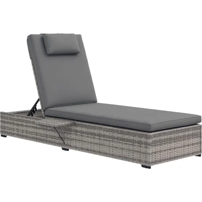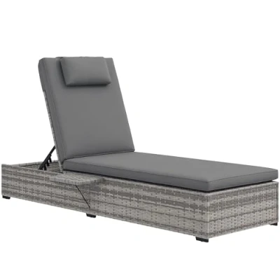 Outsunny Rattan Sun Lounger, 5 Level Reclining PE Wicker Outdoor Patio Lounger with Tea Tray and Cushion, Garden Chair for Patio, Terrace, 120kg Weight Capacity, Grey